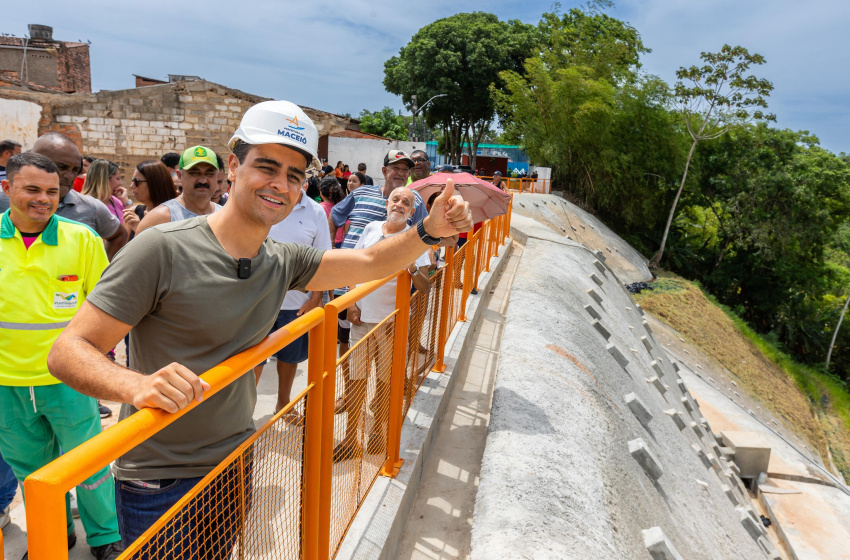 “Com muita coragem, pela primeira vez em Maceió existe uma política pública de contenção de encostas. Já são mais de R$ 150 milhões de obras licitadas para fazer esse tipo de obra que está por toda parte da nossa cidade, para darmos mais qualidade de vida e segurança a quem mais precisa”, disse JHC.