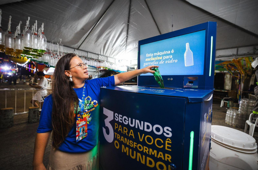 Máquina que tritura garrafas de vidro é a novidade do evento, que ainda conta com a lixeira gigante
