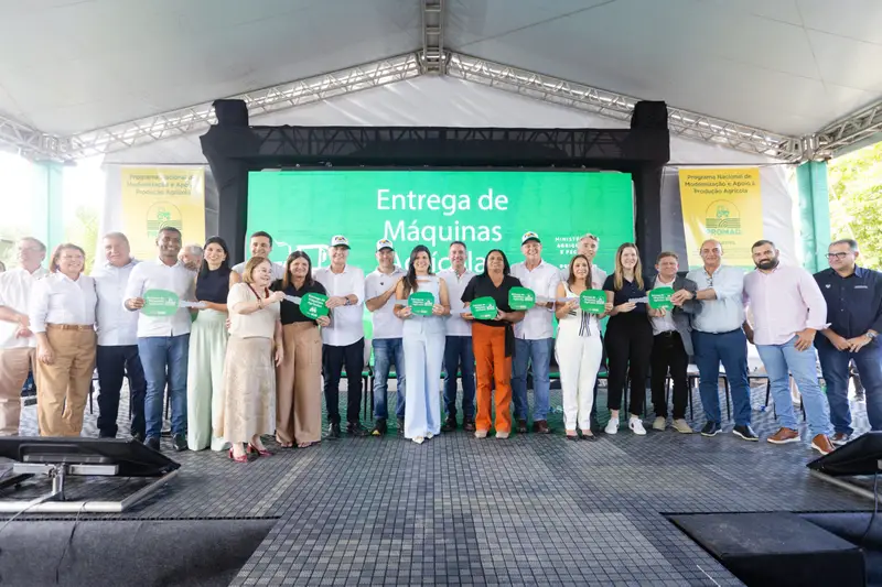 Com a presença de autoridades nacionais e estaduais, os ministros Carlos Fávaro (Agricultura) e Renan Filho (Transportes), além do senador Renan Calheiros e do governador Paulo Dantas, fizeram a entrega de máquinas e equipamentos agrícolas a 30 prefeituras de Alagoas, em um investimento total de R$ 13 milhões. A cerimônia que aconteceu na Superintendência Federal de Agricultura e Pecuária, teve a prefeita Marcela Gomes de Barros, de Novo Lino, representando a Associação dos Municípios Alagoanos.